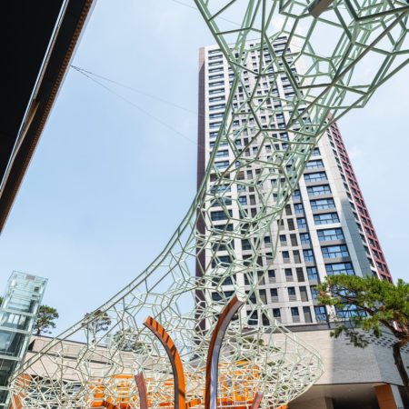 It is hard to pinpoint the essence of Seoul in a single work or even a sentence. It truly is a multi-layered and multi-faceted metropolis, simultaneously steeped in tradition and future oriented, densely populated but still reasonably green. Its inhabitants as car loving as they are outdoorsy, and its geography varied, from the flatlands along the plains of the river Han to the rolling hills and mountains that surround the city. We took all these notions and observations into consideration when designing, ensuring we created a public area – a neighbourhood hub – that would celebrate daily life, therefore echoing, and be as rich, layered and dynamic as the city of Seoul itself.
