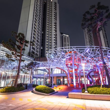 Arcloud is a large mixed-use development located at the foot of the Geomdansan mountain on the eastern edge of Seoul. It includes housing, commercial, recreational, and educational facilities – is tied together by a string of large parks and a green corridor that encircles and interlaces the site. The Arcloud shopping mall, its name somewhat deceiving, since it encompasses much more: it is a modern hybrid city block, a stacked city that combines retail, housing, public facilities, underground parking, rooftop parks and a central plaza- aiming to become the lively centre of this new Seoul residential area.