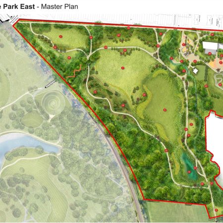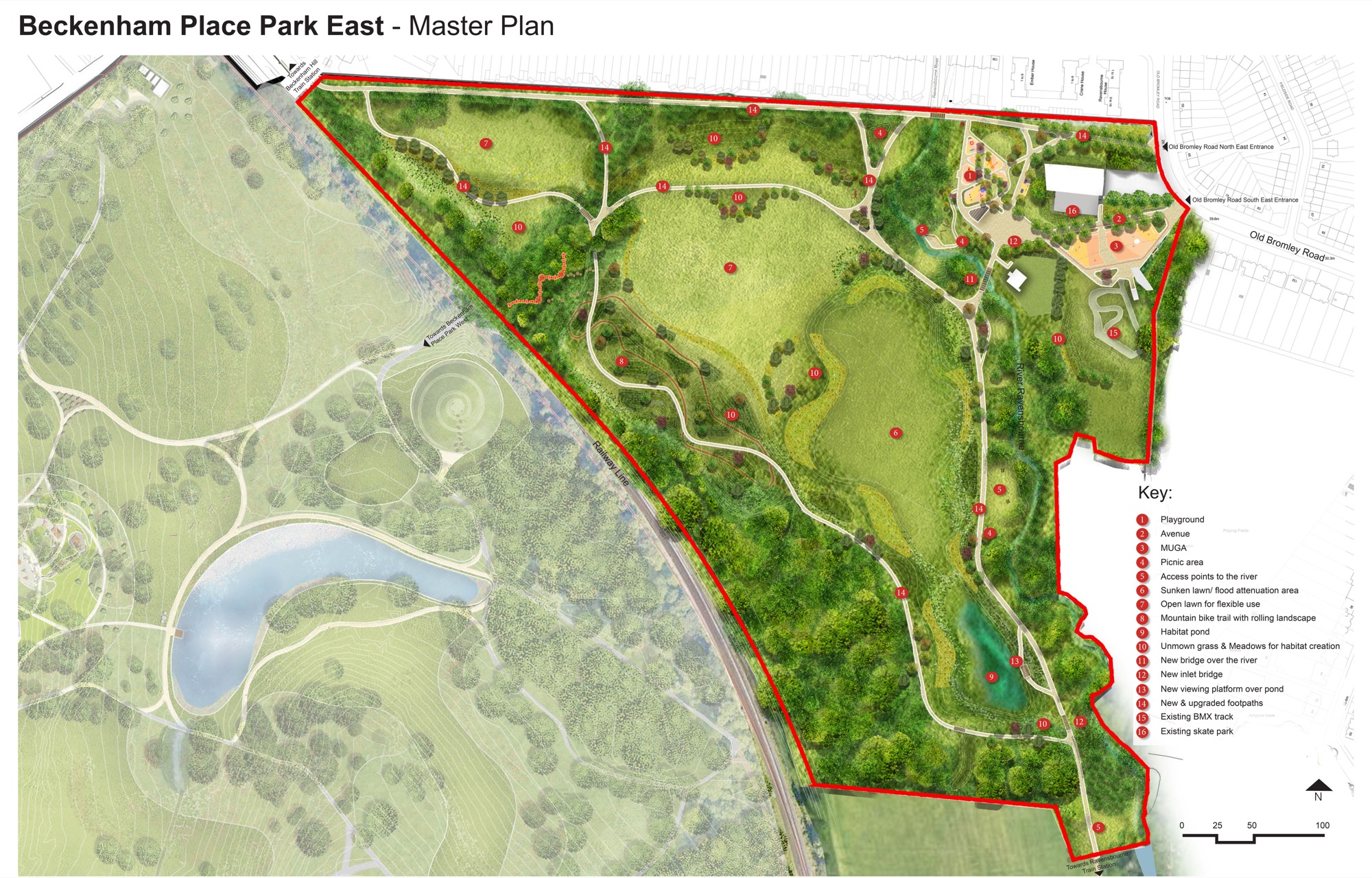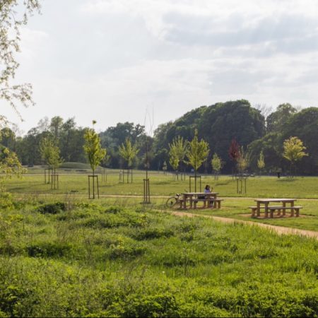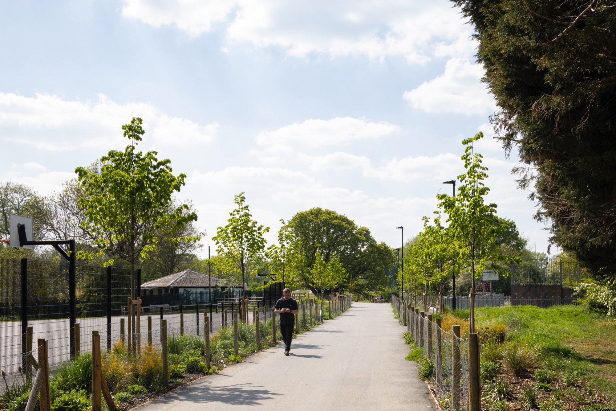 Extensive public consultation, youth workshops, and input from specialists in Special Educational Needs and Disabilities (SEND) shaped the design. These efforts culminated in a fully accessible playground featuring sensory surfacing, quiet zones, and wheelchair-friendly play equipment. Additional inclusive features include a new Multi-Use Games Area (MUGA), table tennis facilities, outdoor gym equipment, and step-free riverside paths with accessible picnic benches and new and upgraded footpaths.The MUGA, a 1,000 m² space located near the entrance, forms an active recreation hub in synergy with the existing BMX and skateboarding areas. Designed with minimal fencing and an open southern edge, the space encourages free movement, enhancing accessibility and inclusivity. Improvements to wayfinding and park integration include the creation of a new lime tree avenue planted with vibrant herbaceous species, a new bridge, boardwalks, new entrance connecting to the wider landscape.