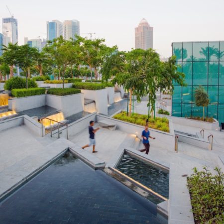 Our client, a major international property development company, recognised the opportunity for this project to deliver a unique space at the heart of the financial district and demonstrate a step change in the approach to public realm delivery in the city. The park facilitates the integration of the parking structure whilst enhancing the connectivity to the waterfront in an area where public realm provision is quite often limited or disconnected. The project addresses numerous challenges faced by the landscape profession such as sustainable use of water in arid climates, encouraging healthier lifestyles through considered provision of recreational facilities and integration of major infrastructure without deteriorating environmental quality. The secret of this project is its approach to promoting social sustainability through cultural interaction, flexibility of space and promotion of the park as a family space. The park creates life and inclusivity in this part of the city.