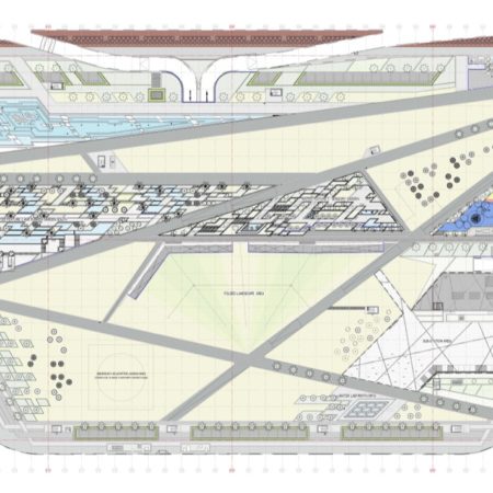 The landscape design was developed around the creation of a series of diverse and vibrant pleasure gardens, each having a distinctive character and programme. A strong angular geometry responds to the modern city backdrop and references local cultural forms. This spatial and geometric framework defines a series of open landscaped areas with recreational functions throughout the day and year, from informal recreation and activities to programmed events and festivals.